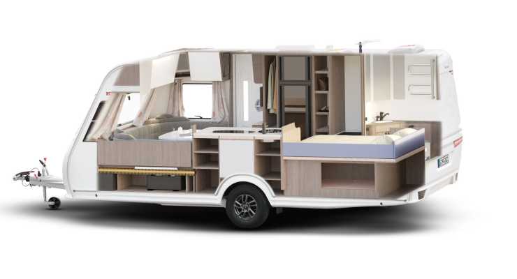 Ingenting avslöjar att denna husvagn hör till ett instegssegment eller någon form av nedbantad och designmässigt förlegad husvagn. Tvärtom!