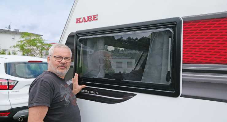 – Estate har definitivt en modern touch med sin rödsvarta 3D-design på de släta plåtväggarna och bakväggen är också elegant, säger karosspecialisten Rudi Stahl som anlitats under supertestet, tillsammans med ett antal andra experter på husvagnar.