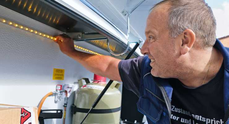– Husvagnar med egna parkeringsljus – det är bara svenskar som gör sånt. Det är ett rejält plus säkerhetsmässigt och inte bara i händelse av nattligt haveri, säger TÜV-ingenjören Roman Heinzle som är nästa expert att gå igenom Estate 520 XL.