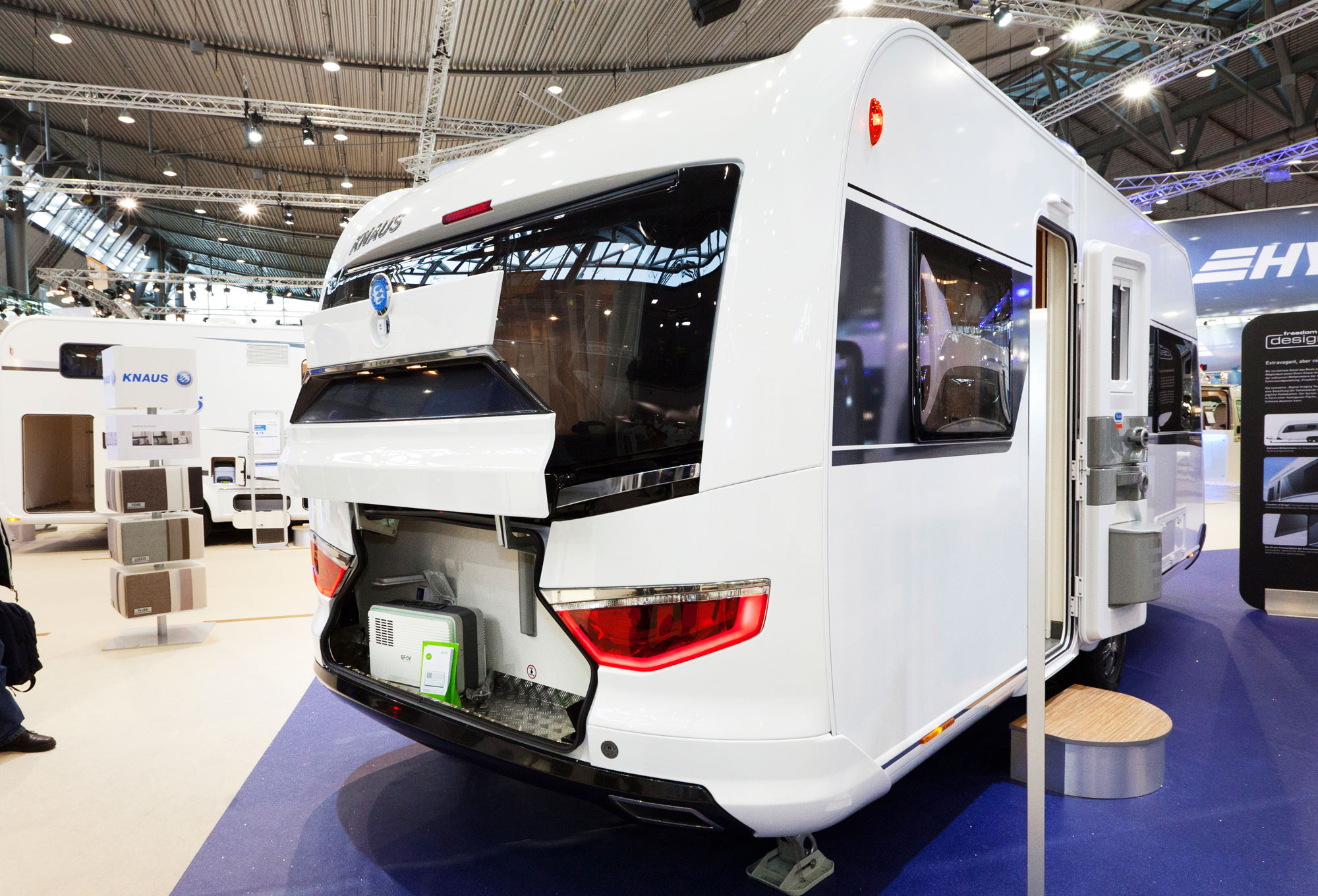 I vagnens baklucka står en Efoy bränslecell. Den symboliserar det faktum att det finns en ruta i tillvalslistan som heter Efoy Comfort 140 med priset 5 199 Euro. Det kan tyckas dyrt, men det rimmar väl med vagnseriens anda. Den ska inte vara billig utan en vagn för de som vill ha det extraordinära såväl design- som prestandamässigt.