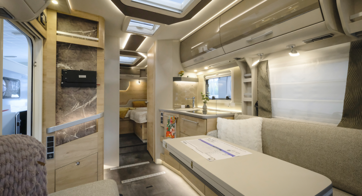 En helintegrerad husbil med höga långbäddar är något som står på mångas önskelista. Det ger fördelar som plats för garage samt sängar som är lätta att bädda. Vi tittar på Esprit EBL från Dethleffs som dessutom har en modern loungesittgrupp.