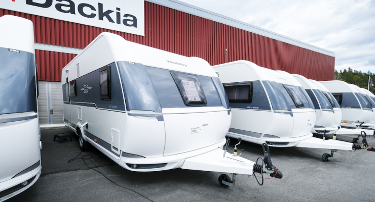 Hobby 560 KMFE De Luxe. I mitten av 90-talet var den en nyhet och den blev en av Hobbys mest framgångsrika modeller. 560 KMFe tillhör den större mellanklassen och var i sina tidiga år ganska ovanlig med sina fyra permanenta sovplatser i kombination med stor sittgrupp.