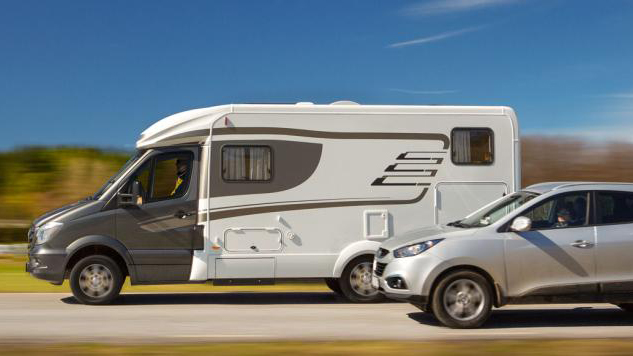 Sprinter är dryga decimetern smalare än Fiat Ducato så att bygga en smal bil på chassit är ingen dum idé, sidoöverhänget blir då mindre. För det är på väg som denna bil kommer till sin rätt. Det är så nära en personbil det går att komma i en transportbil, som det faktiskt handlar om. Bakhjulsdriften är en fördel i många fall då husbilar ofta har rejäl tyngd på bakaxeln. Motorn i den bil jag kör är fyrcylindrig och ger 163 hk istället för standardmotorn som ger 129 hk. Största motorn är en sexa på 190 hästar. Bilen jag kör är olastad så den går som ett relativt skott. Dessutom har den en sjustegad automat som växlar njutningsfullt mjukt. Men den njutningen har ett pris av 28 900 kronor i pengar och 48 kilo mer vikt. Chassit är en Sprinter standardram med stel bladfjädrad bakaxel. Det ger en ganska hög tyngdpunkt. Axelavståndet är 3 665 mm vilket ger en snäv vändcirkel men ett långt överhäng. I höga hastigheter är den därför sidvindskänslig och upplevs lite darrig vid omkörningar av lastbilar. På mindre vägar i hastigheter upp till 90 km/h trivs den som fisken i vatten.