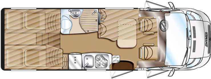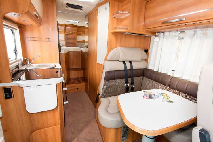 I standardutförande finns det en trelågig gasspis. Bredvid köket finns ett smalt men högt kylskåp från Thetford som rymmer 142 liter. I mittgången finns en taklucka med inbyggd fläkt med luftström som kan riktas in eller ut i bilen. Sovrummet har höga långbäddar vilket ger låg takhöjd i sängarna. I gengäld finns det gott om plats under dem till förvaring i såväl garderober som garage.