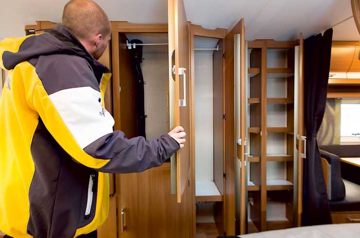 Klädgömma. Det finns som sig bör rejält med garderober i denna familjevagn men vi saknar belysning.