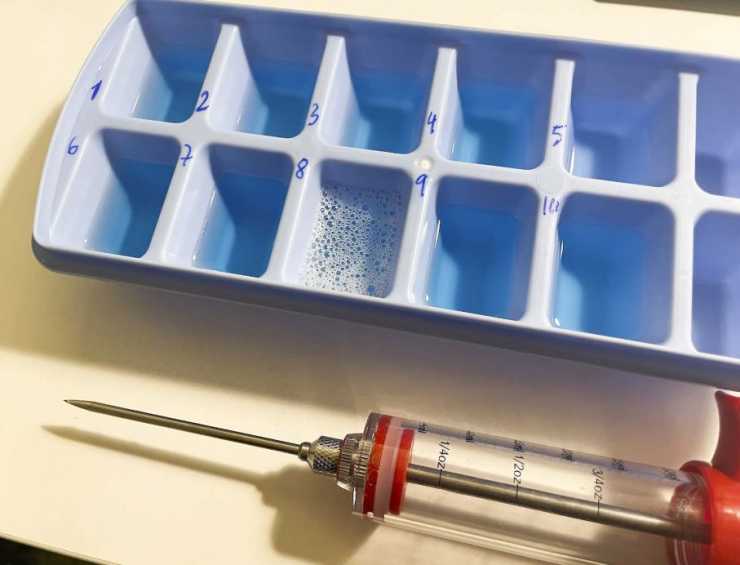 Hur vätskorna klarar avdunstning har vi testat genom att frysa in dem i en kubformad behållare utan lock i -18 grader under tio timmar samt under 24 timmar.