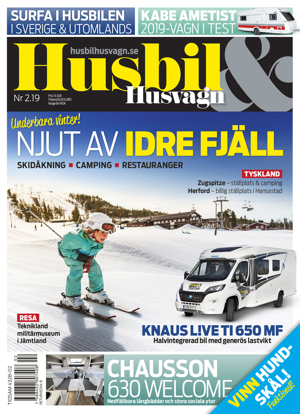 Provkörda Knaus L!ve Ti och Chausson 630 Welcome samt vagnen Kabe Ametist 560. Skidresa till Idre Fjäll, militärmuseum i Jämtland, ställplatser och camping i Tyskland samt mycket mer!