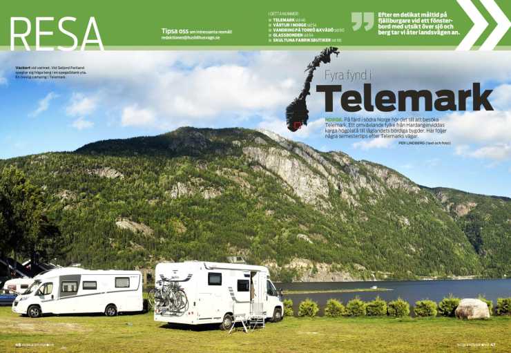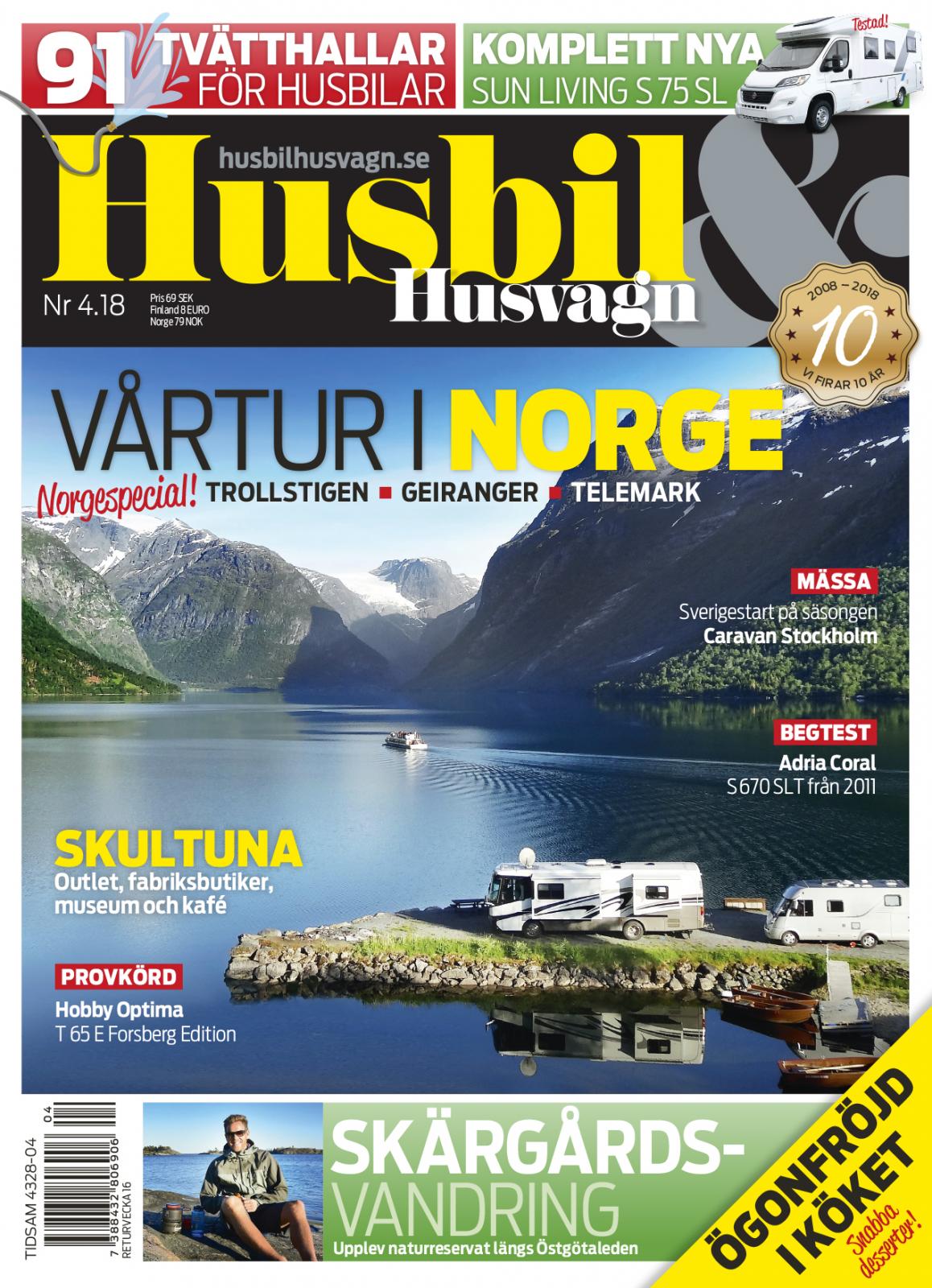 Halvintegrerade Sun Living och Hobby Optima, husvagnen Hobby De Luxe och begtestade Adria Coral. Tvätthallar i Sverige för husbilar. Stor resespecial till Norge. Vandring i Östergötland samt mycket mer.