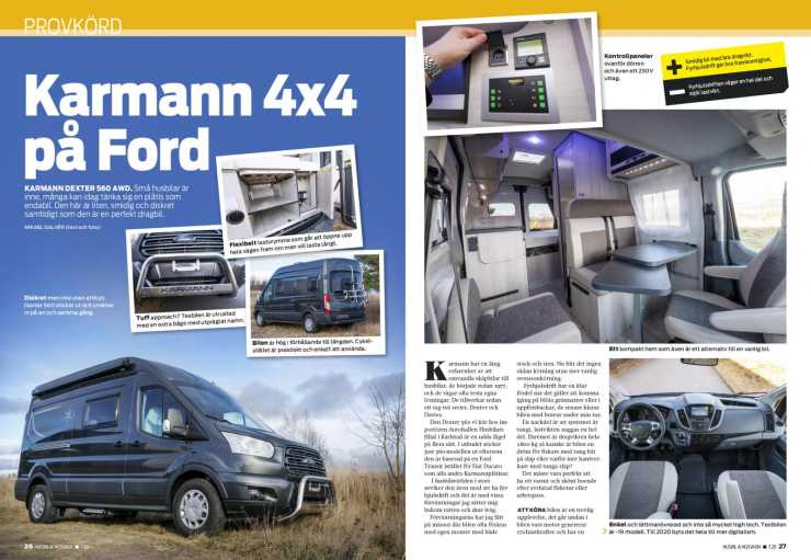 Vi provkör Karmann Dexter AWD, Bürstner Lyseo M 660 samt testar vagnen Hobby 560 KMFe. Köpguide: välj rätt sorts husbil! Våra resmål rymmer familjeäventyr på Parken Zoo, mysig tur i Röttle by vid Vättern samt ställplatstips i Mariestad. Hyra husbil – allt du bör tänka på!