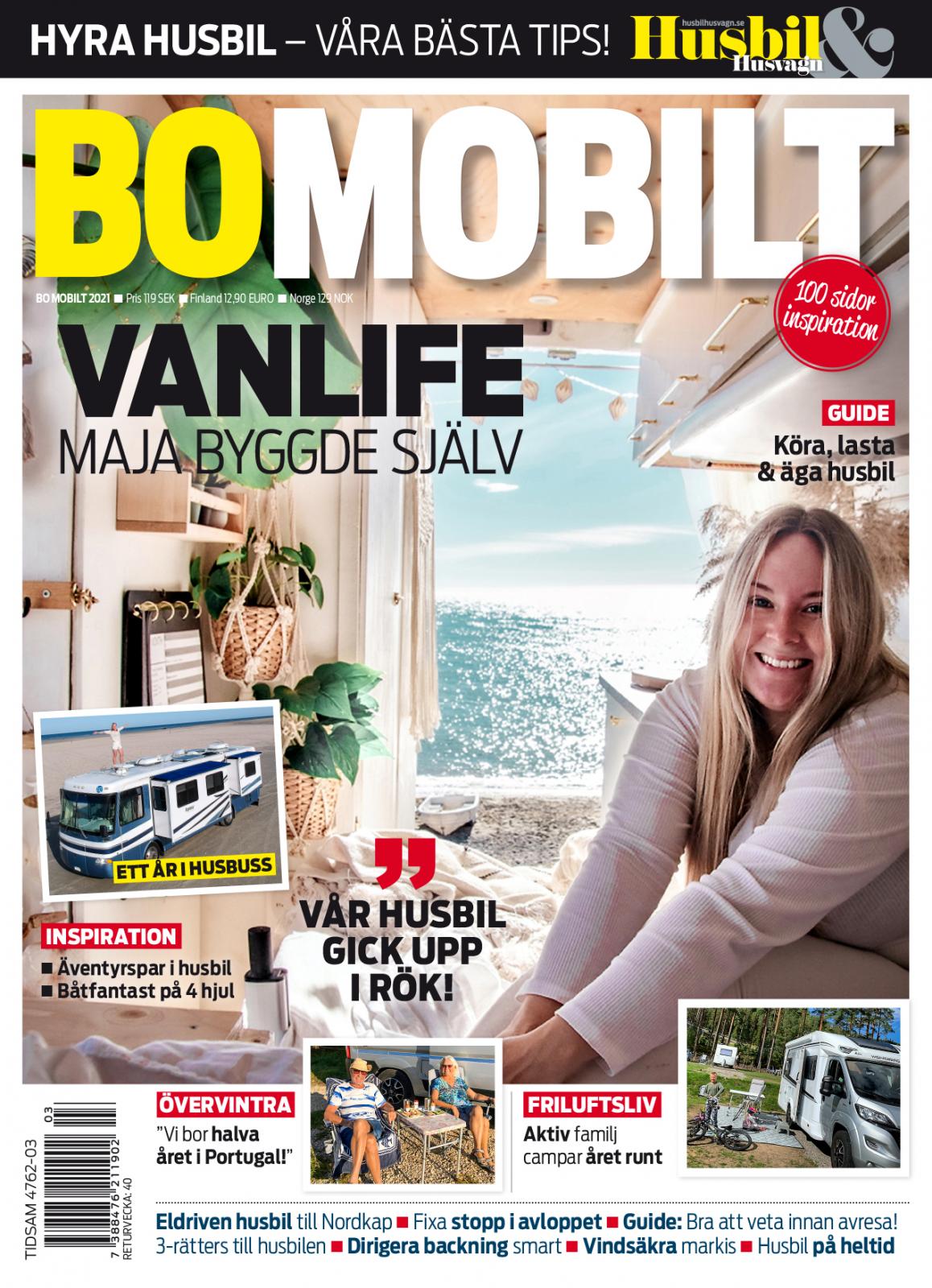 Nu är Bo Mobilt 2021 ute! Köp den i butik eller beställ här! Läs om de som tagit steget fullt ut och bor i sin husbil året om eller byggt sin husbil själv. Möt äventyrsparet som reser med husbil och barnfamiljen som valde att bo ett år i husbuss. Smarta guider till dig som är nybörjare inom mobilt liv.
