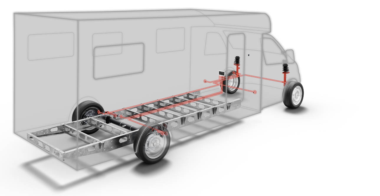 Systemets namn är AL-KO Comfort Drive och det är aktiva stötdämpare vars fjädringskomfort närmar sig en riktig luftfjädring. Det ger förutom mjukare fjädring också mindre vibrationer och en lägre bullernivå i husbilen. Men till skillnad från luftfjädring så förbättras även stabiliteten och styrprecisionen enligt AL-KO.