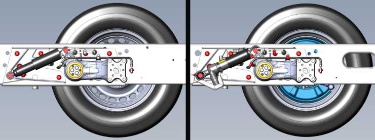 De aktiva dämparna är försedda med ventiler för tryckreglering som styrs via en elektronisk enhet som monteras i förarstolens konsol. Lämplig dämpningshårdhet ställs blixtsnabbt in utifrån den information som fås från 7 sensorer på de rörliga axlarna och på karossen. Reglering sker inom ramarna för grundinställningarna för standard respektive komfort.