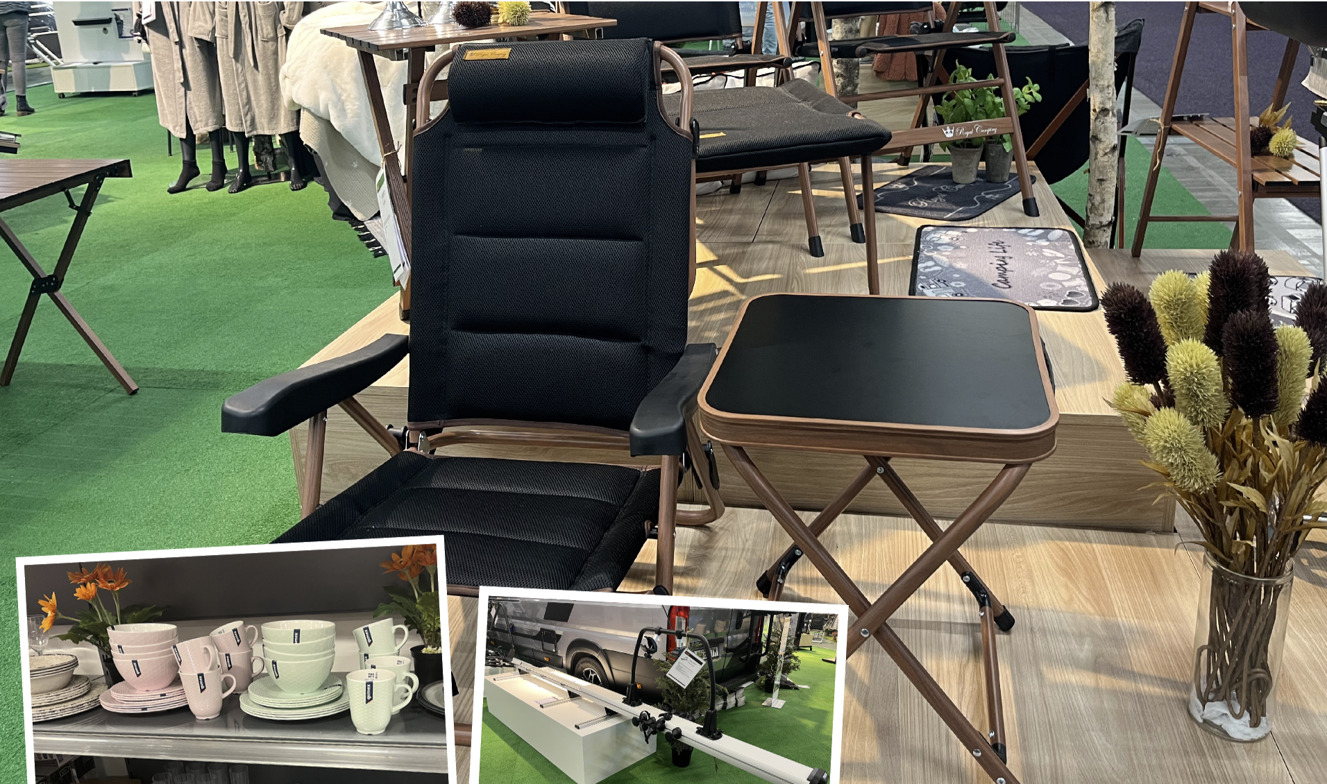 I Kama Fritids stora monter i B-hallen finns mycket att titta på. Bland nyheterna syns bland annat serien Monark, Royal Camping som lurar ögat vid första anblicken. De kännetecknas nämligen av svart textil och metalldelarna har träimitation. Vilket man snabbt känner när man väl rör vid dem.