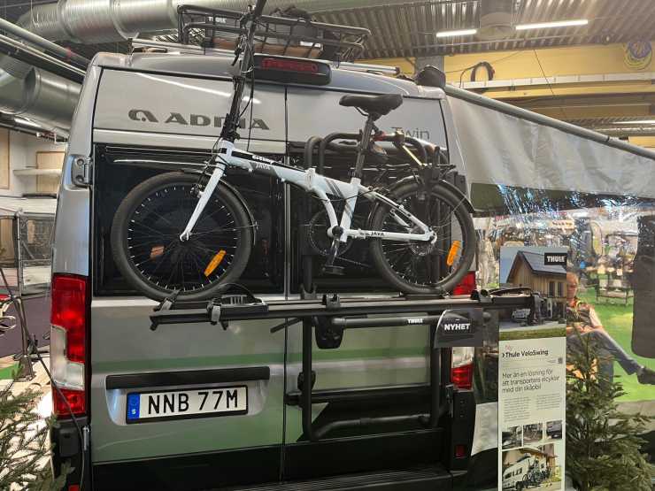 Att ta med cyklar är poppis och det finns två nya cykelhållare från Thule. Både som passar till inuti garaget eller sådant som monteras på plåtisens bakdörr.