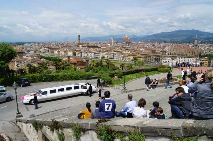 Den makalösa utsikten (glöm inte kameran!) får ni på Piazzale Michelangelo. För övrigt också en parkering stor nog för en husbil – dock inte över natten… Efter fotostunden på piazzan tar man med fördel trapporna ner till kvarteret nedanför. Området har flera små trevliga restauranger och enotecas där man gärna beställer ett glas Brunello.