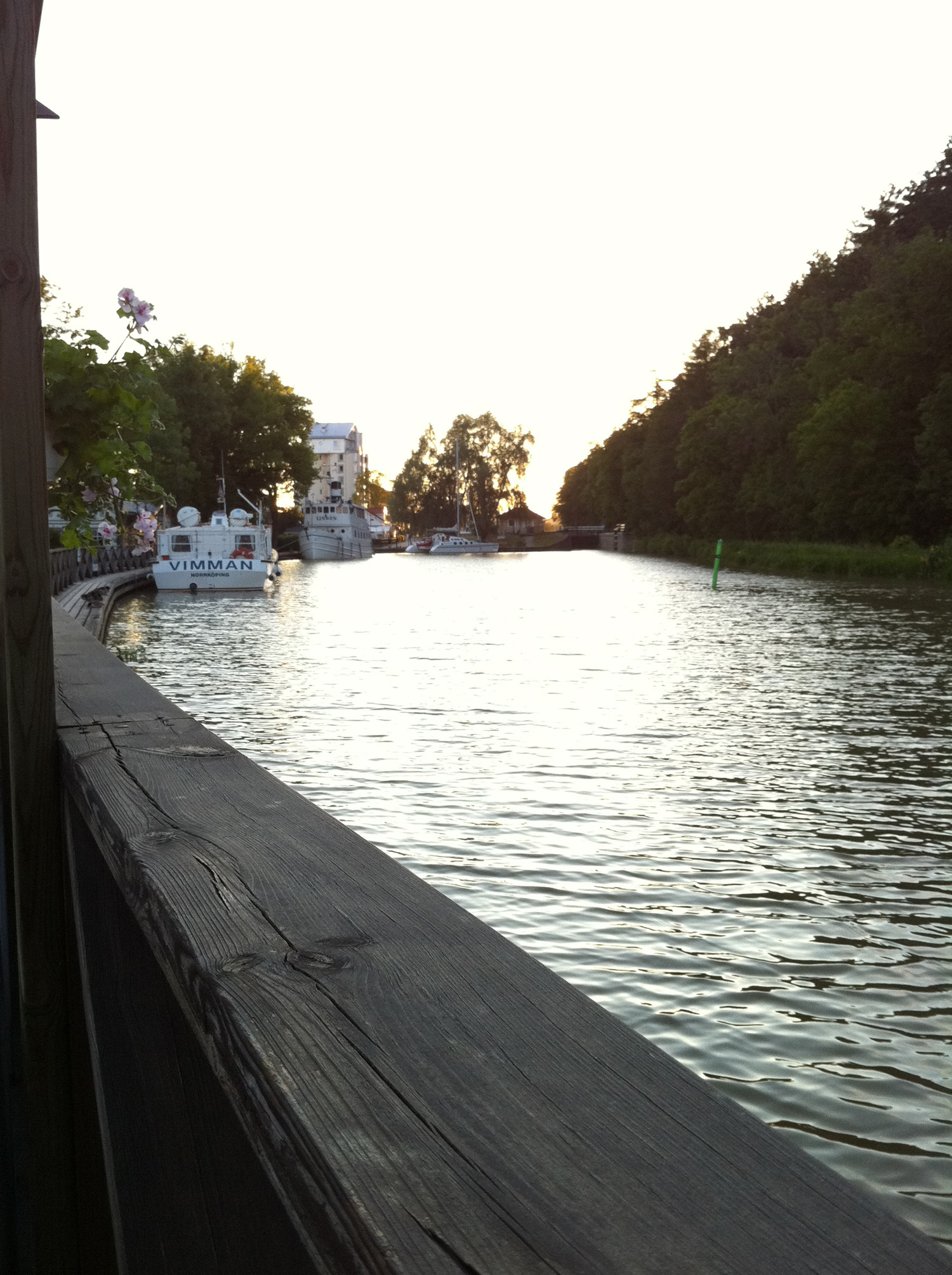 Att under turistsäsongen snurra runt i centrala Söderköping med en 7,4 meter lång helintegrerad husbil, kändes som ett hopplöst företag. Döm om min förvåning när vi av en slump hittar en utmärkt parkeringsplats mitt i stan! En rejäl parkering belägen framför en skola, avgiftsfri och med gångavstånd till stadens alla begivenheter. Ytterligare två husbilskamrater (tyskregistrerade) hade hittat fram till platsen och uppställda med nosen mot kanalen camperade vi alla över natten. Dagen därpå skådade vi en parkeringsvakt men ingen bot sattes på vår ruta.