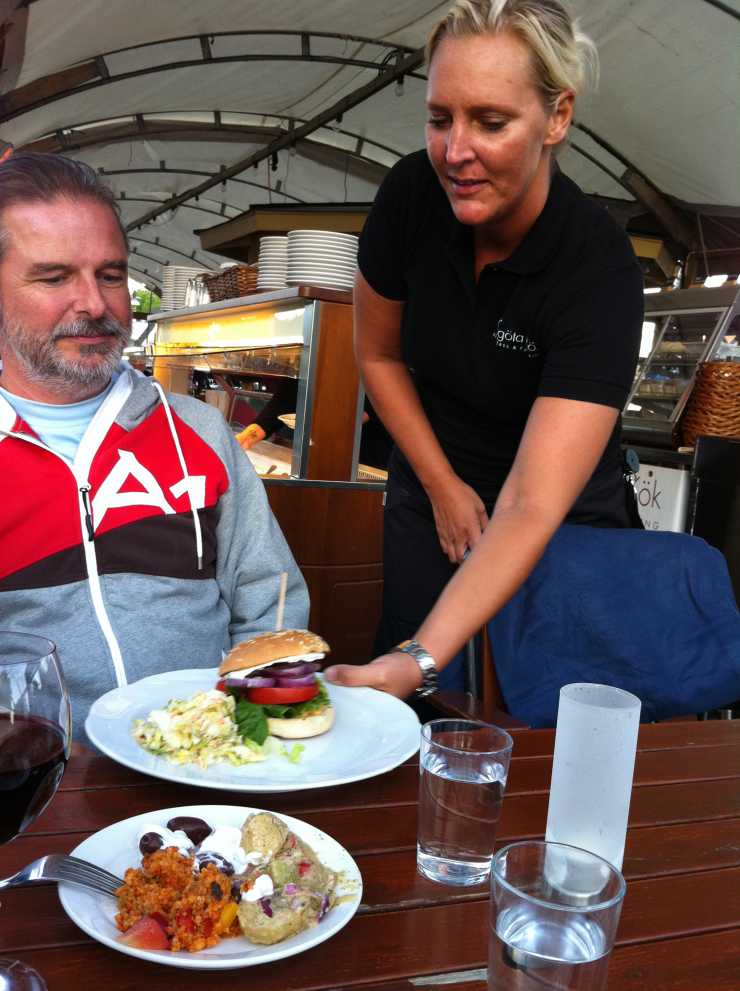 Kvällen dessförinnan intogs middagen på Östgöta Kök, en nyöppnad restaurang, inkvarterad på en båt guppandes i Göta Kanal. Restaurangen bjuder på underbar miljö och kvällssol. Min hamburgare för cirka 125 kronor var också helt okej. Störst matmässiga intryck gjorde dock anrättningarna på buffétbordet – väldigt trevligt att de dessutom ingick i priset!