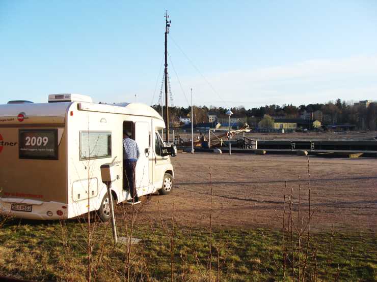 Ställplats längs med bryggorna i gästhamnen. Kostnad: 140 kr/natt. Övrigt: Trevligt och centrumnära läge. Dusch, gratis tvättstuga, minigolf, turbåtar i skärgården. Kontakt: Mats Öhman, 0550-88239