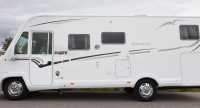 En helintegrerad bil på drygt sju och en halv meter. Planlösningen utgörs av höga långbäddar över garderober och stort lastutrymme, separat toa och dusch, vinkelkök samt sittgrupp som bänkar fem personer. En publikfriare med andra ord. En riktig sjuförti