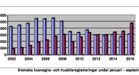 Fortsatt höga siffror för registreringar Nyheter 3 oktober 2016 Registreringarna för husbilar och husvagnar fortsätter upp i skyarna och ligger hack i häl på det hittills bästa året. Med tanke på att Elmia-mässans utställare rapporterat om rekordförsäljning kan det bli en spännande final på året. Gasa